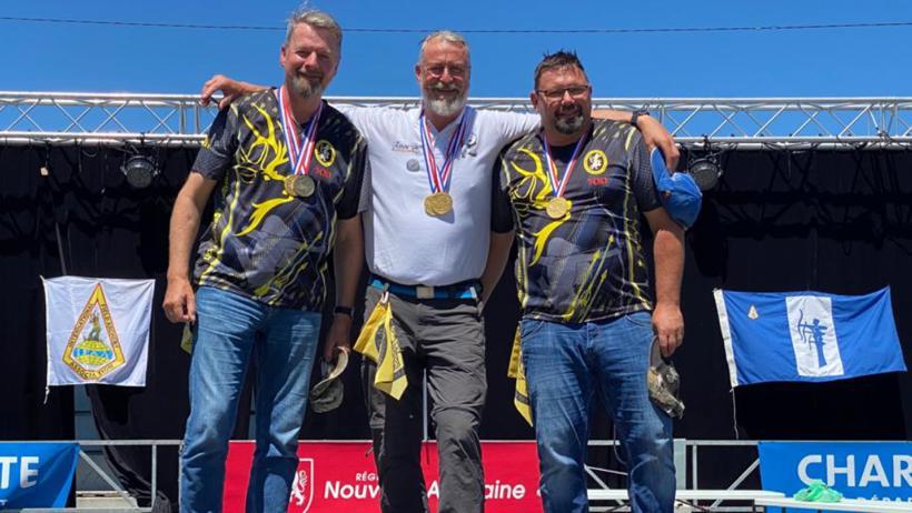 Auf den Fotos ist Jörg mit seinen Mannschaftskollegen Joachim Geyer und Erwin Sedleczki auf dem 1. Treppchen!