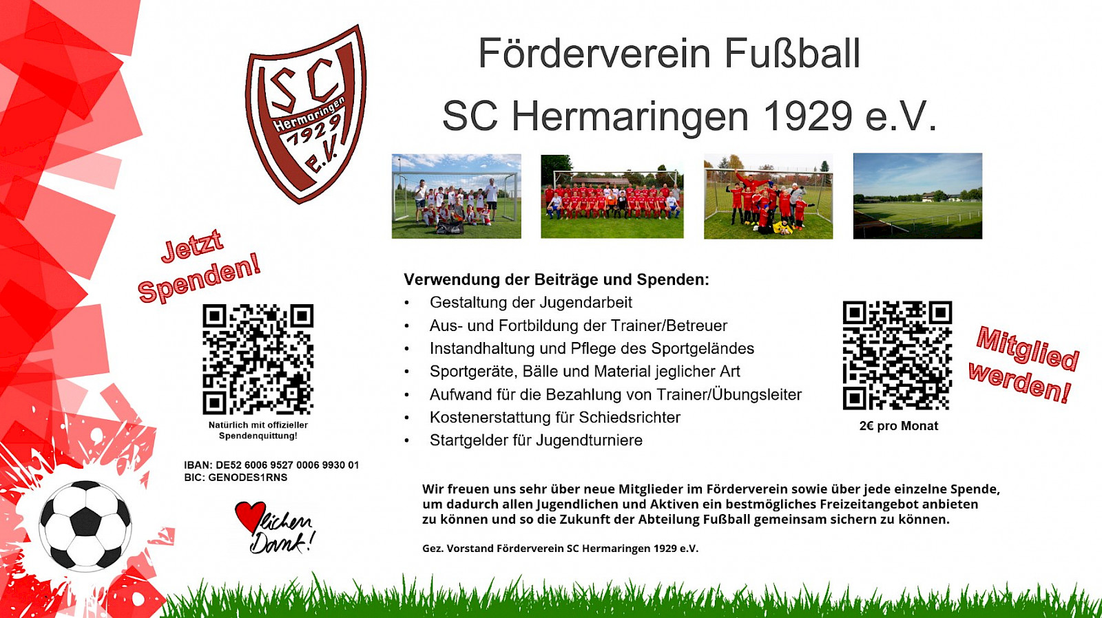 Am 20.05.2021 wurde der "Förderverein Fußball SC Hermaringen e.V." gegründet mit dem Zweck der ideellen, sportlichen und finanziellen Förderung der Abteilung Fußball des Sport-Club Hermaringen 1929 e. V.