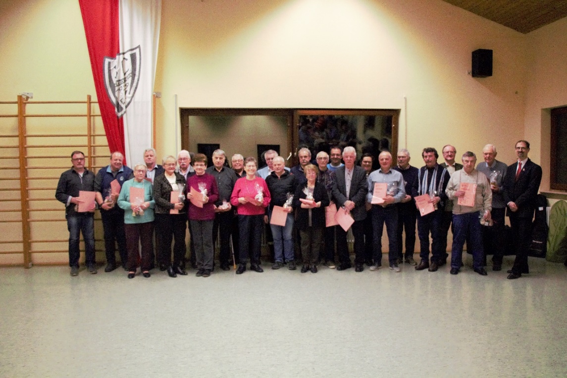 Bei einem Großteil der Ehrungen handelte es sich um langjährige Mitgliedschaften. Es wurden hierbei 30 Mitglieder für eine 25-jährige, 23 Mitglieder für eine 40-jährige, 36 Mitglieder für eine 50-jährige, sieben Mitglieder für eine 60-jährige und vier Mitglieder für eine 70-jährige Vereinszugehörigkeit geehrt.