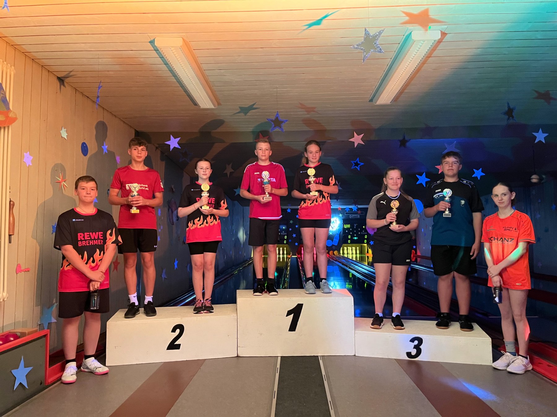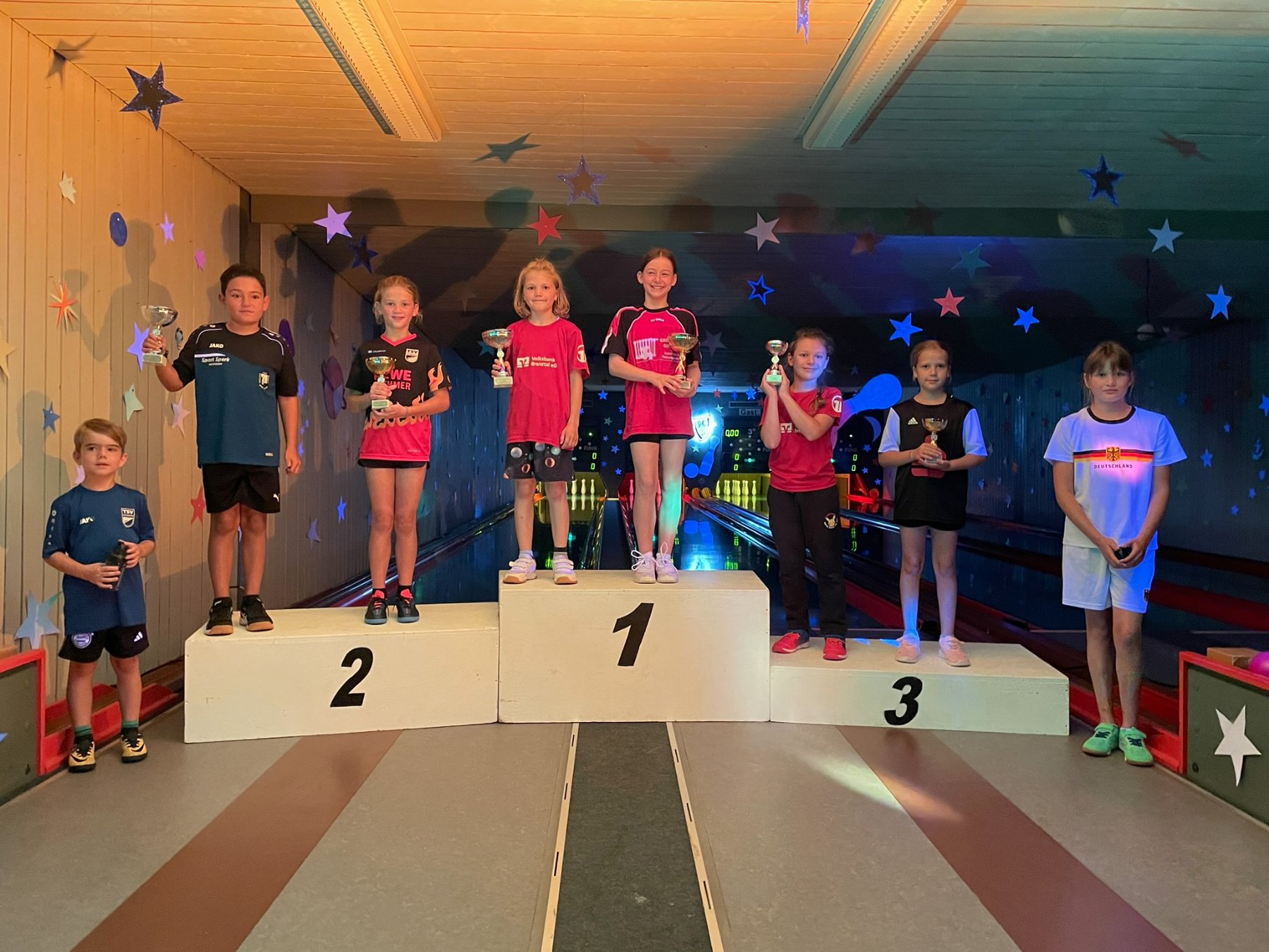 Dieses Jahr durften wir uns wieder über acht Kinder freuen, die sich im Kegelsport ausprobierten. In der Altersklasse U10 spielte der jüngste Teilnehmer mit nur drei Jahren außer Konkurrenz mit voller Freude mit. Den ersten Platz erkämpfte sich zielstrebig Anna Hägele aus Hermaringen, gefolgt von der Heidenheimerin Chiara Dauner. Louisa Hägele durfte sich über den dritten Platz freuen. In der U14 siegte Sofia Dauner deutlich vor Stelle Theuerkauf und Kian Dogan.